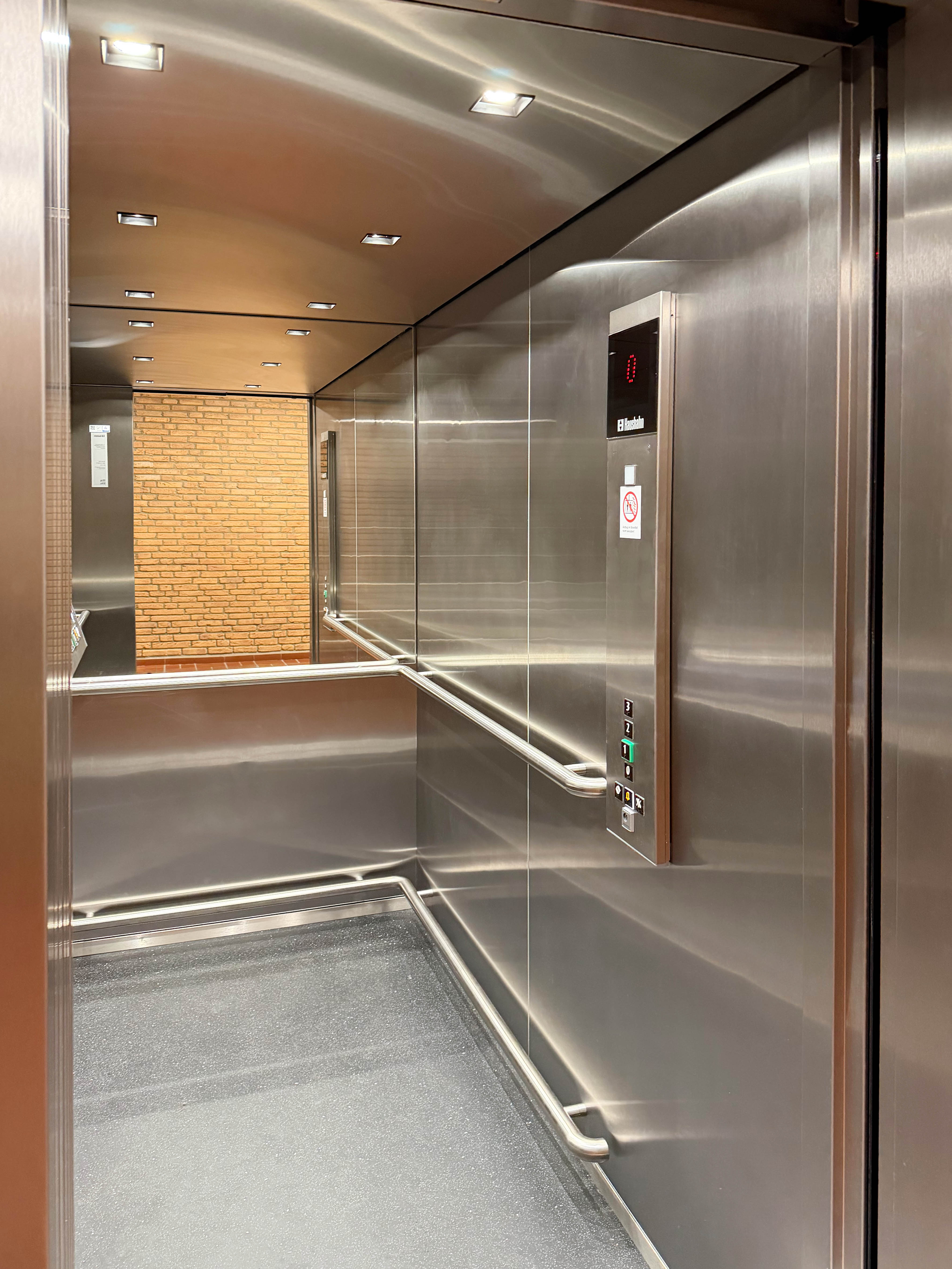 Aufzugsmodernisierung Berufsschule Bergisch Gladbach – nach der Modernisierung (Kabine)